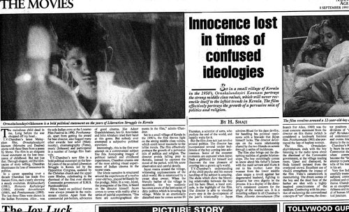 the sole Indian entry at the Locarno Film Festival in 1990. Ponthanmada, apart